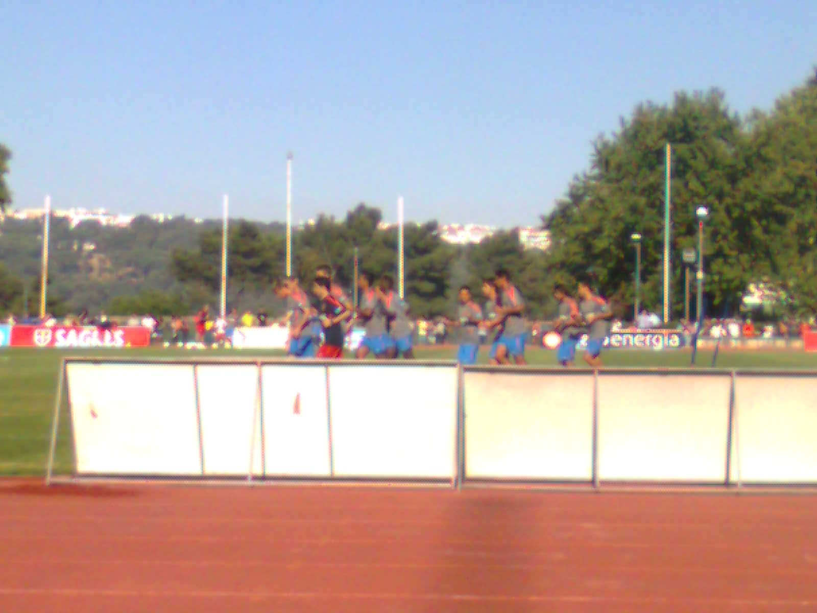 A propósito dos polícias, estes continuavam tão rigorosos como sempre no que tocava aos limites. Eu e a minha irmã rapidamente havíamos decidido não nos fixarmos nas bancadas, irmos mudando de sítio de modo a encontrar os melhores locais para vermos o treino. Na parte em que não havia aquele muro de cerca de um metro de altura, não nos deixavam ficar lá paradas. Passámos uma boa parte do tempo junto a uma das balizas principais, local onde os guarda-redes treinavam e onde, mais tarde, se realizou um dos jogos de treino. Naquela altura, estávamos ao lado de uma pequena família. O polícia veio recordar-lhes a regra das pernas em cima do muro, vindo depois com uma conversa, dizendo que teríamos melhor visibilidade nas bancadas.