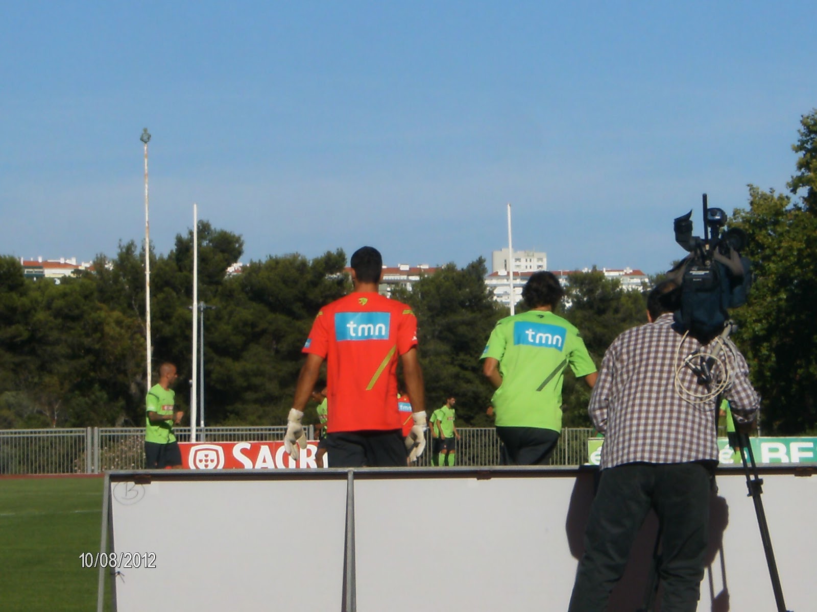 Mais tarde, acabei por ir para o outro lado do campo, para onde a maior parte do pessoal se tinha acumulado. Fiquei lá até ao fim do treino, vendo o Coentrão, o Bruno Alves, o Danny e outros de quem não me recordo jogando futevólei, na esperança de que, depois, viessem distribuir autógrafos. Ao longo do outro treino a que assisti, tinha-me deslocado regularmente, tentando ver o que se passava no campo de todos os ângulos possíveis. Ontem não pude fazê-lo porque estava demasiada gente e os polícias tinham vedado o acesso a uma parte da pista de corrida. Em todo o caso, estive a vê-los de perto e fui testemunha da alegria, do companheirismo, da cumplicidade que reina entre os Marmanjos.